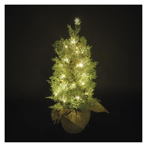 EMOS – Konstgjort LED-cypresträd 50 cm – cypress i kruka, 30 lysdioder, varmvit – 6/18 h timer, batteridrift (3 x AA), kabellängd 0,15 m, inkl. jutesäck – 10 000 h, för inomhus- och utomhusbruk – grön
