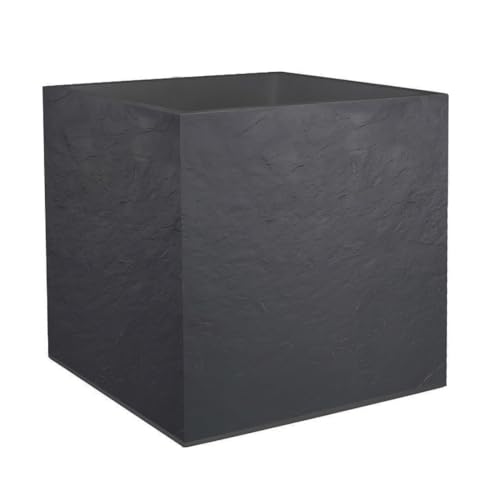 EDA - Fyrkantig kruka 50 cm Volcania 57 l – dekor stenutseende – dubbelväggig – vattenförvaringsområde – 49,5 x 49,5 x 49,5 cm – antracitgrå