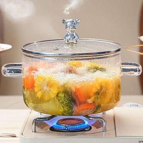 QSLKI 1.5L / 50oz Glas Gryta Med Täck, Grytor Glaskruka Gryta, Värmebeständig Glasspis Matlagning Kruka Med Lock, Pastakruka Köksredskap Stockpots För Matlagning, Bakning, Servering, Soppa, Mjölk