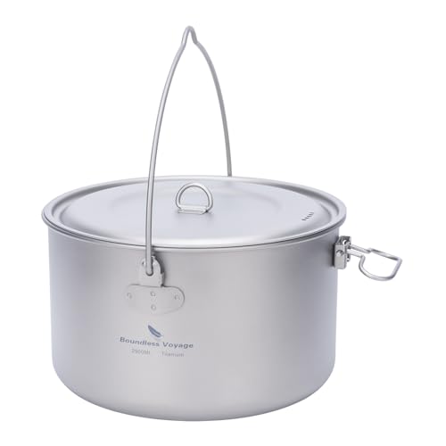 Boundless Voyage Titan kruka 2,9 l camping gryta med lock utomhus lätt soppgryta lägereld hängande gryta köksredskap vandring skål sele bärbara köksredskap Ti2045C