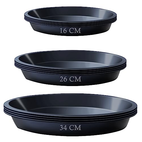 12 st krukfat för växter, 16 cm 26 cm 32 cm krukbrickor för trädgårdsväxter, plast, blomkruka, fat, rund vattenbricka, fångare, växtbaser för inomhus, utomhus, trädgård (16 cm, 26 cm, 32 cm, 4 av