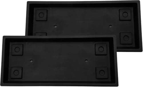 The HC Companies Venetiansk rektangulär växtbricka, lätt krukfat i plast, droppbrickor för växter, krukfat för inomhus- och utomhusbruk (44,5 cm, Black, 2 st)