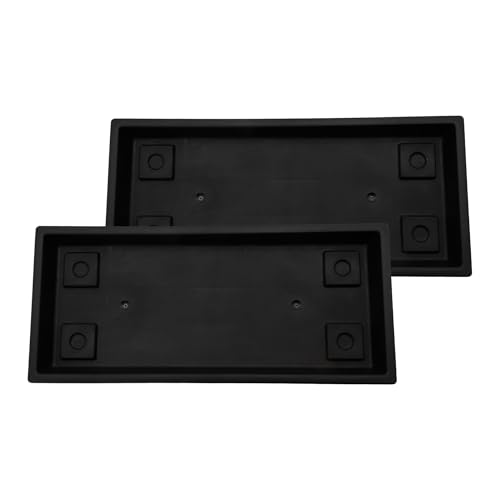 The HC Companies Venetiansk rektangulär växtbricka, lätt krukfat i plast, droppbrickor för växter, bricka för dränering, UV-beständigt krukfat för inomhus- och utomhusbruk (60 cm, Black, 2 st)