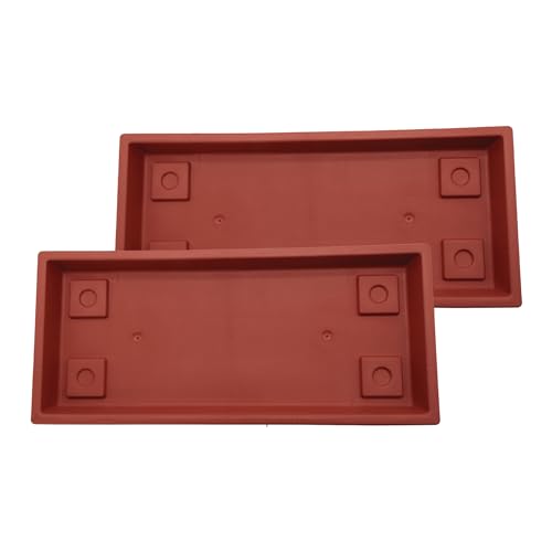 The HC Companies Venetiansk rektangulär växtbricka, lätt krukfat i plast, droppbrickor för växter, bricka för dränering, UV-beständigt krukfat för inomhus- och utomhusbruk (60 cm, Clay, 2 st)