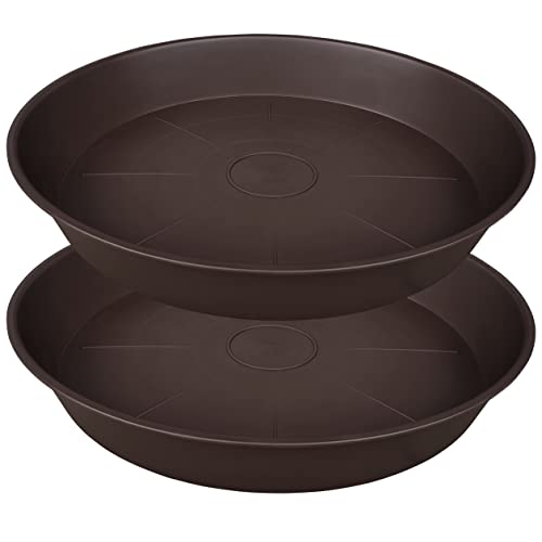 Bleuhome 2-pack med 20 55 cm blomfat, 9 cm djup bricka, stora djupa kraftiga fat för krukor, trädgård plast blomväxtbrickor för inomhus utomhus, bricka för planterare 48–58 cm (brun)