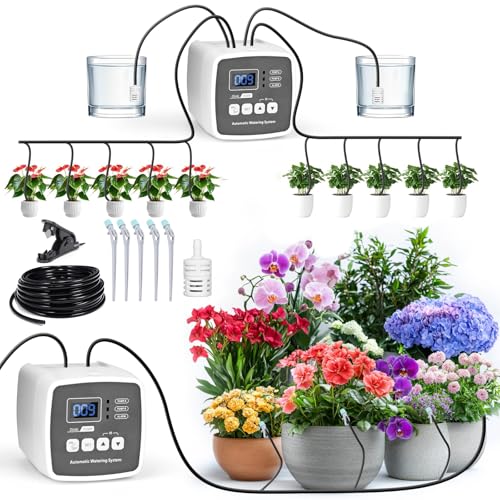 Automatiskt bevattningssystem inomhus för trädgårdsväxter, GuKKK automatisk bevattning med dubbel pump, droppbevattningsset med justerbar, bevattning inomhusväxter för 20 krukväxter