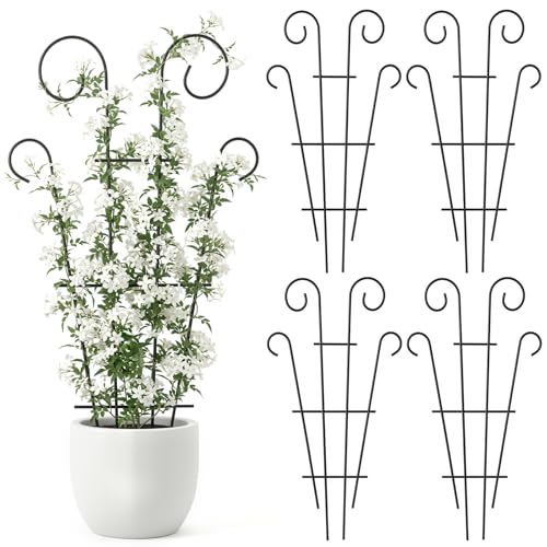 Thealyn 4-pack 109 cm/43 tum inomhus växtspaljé för krukväxter klättring, utomhus metall trädgård spaljé krukväxter blommor klätterväxt murgröna, fläktform, svart