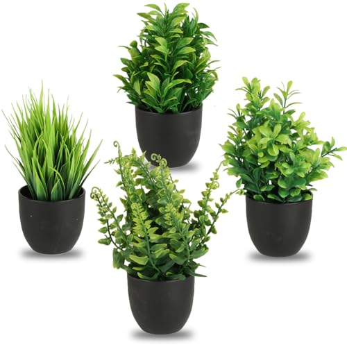 Canirologas konstgjorda växter inomhus, små falska simuleringsväxter, fuskplast krukväxter, kreativa dekorativa ornament för dekoration, bokhylla, balkong, kontor, badrum (4 st vit)