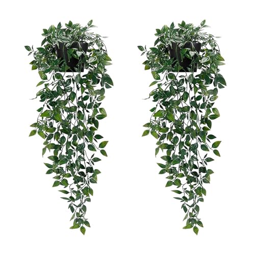 Konstgjorda hängande växter, 2-pack konstgjorda växter inomhus i krukor, små konstgjorda växter i krukor, hängande inomhusväxter, grönska fuskmurgröna dekor, falska krukväxter för inomhus utomhus