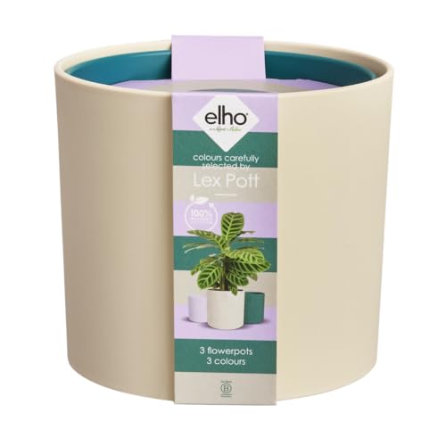 elho Lex grytset med 3 – krukväxter inomhus – 100% återvunnen plast – Ø 11, 13 och 14 cm – vit/sammetskräm