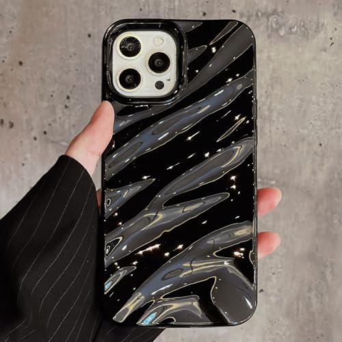 QLTYPRI Kompatibel med iPhone 12 Pro Max-fodral, söt våg vatten krusning mönster fodral för flickor kvinnor, smal glansig mjuk silikon TPU stötfångare stötsäkert skyddande telefonfodral för iPhone 12