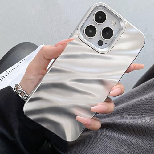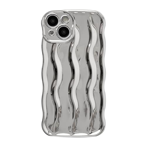 Caseative iPhone 15 fodral, vatten krusning mönster lockig våg ram mjukt fodral (silver)