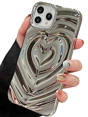 iPhone 13 Pro Max kärlek hjärtfodral, mode söt mjuk silikon galvaniserad silver 3D hjärta vatten krusning bling glitter stöttålig kvinnor flickor fodral för iPhone 13 Pro Max