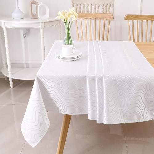 Majestätiska presentartiklar polyesterdukar för rektangulära bord | (70/144) – TC1348 Jacquard silver krusning fåll stygn matbord skydd | dekorativ tvättbar bordsduk för kök, matsal