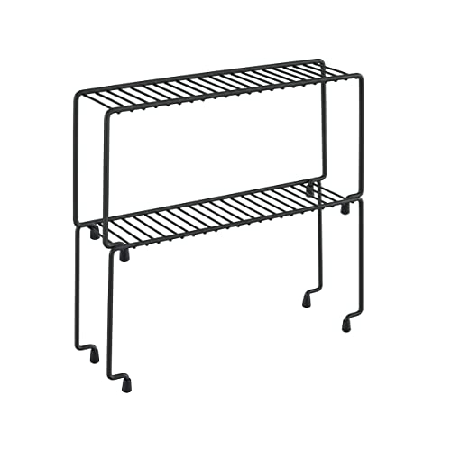 SONGMICS Kryddställ, Set om 2, Kökshylla, Köksorganisatör, Kök, Kryddhållare, Expanderbar, Stapelbar, Liten Hylla, Metall, Bläcksvart KCS401B01