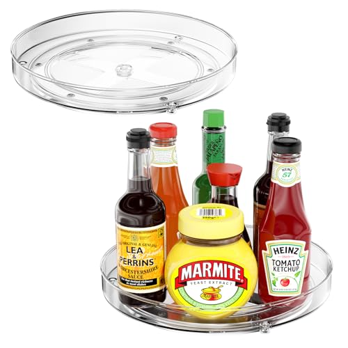Fousenuk 2 stycken roterande tallrikar kylskåpsförvaring, 25 och 30 cm vridplatta, 360 roterande kryddhållare, roterande kryddhylla för förvaring, kök, kryddor och organisation, kökshylla