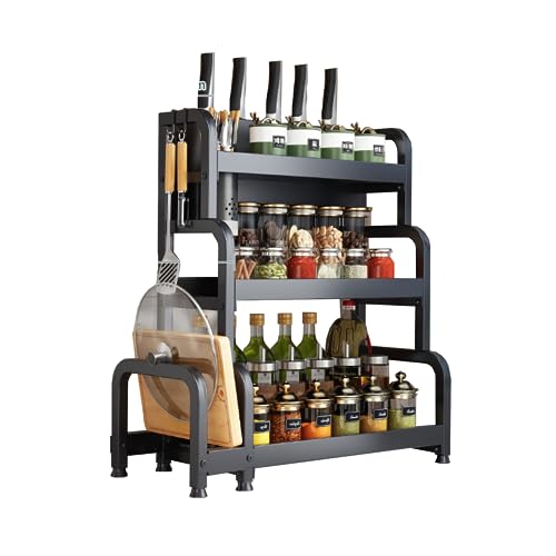 Froadp Kryddhylla i metall kryddställ kökshylla stående organisatör kryddhållare 35 x 20 x 52 cm multifunktionella hyllor för köksskåp bänkskivor badrum (svart)