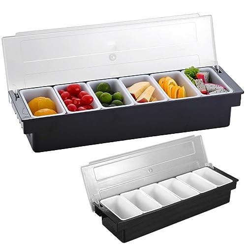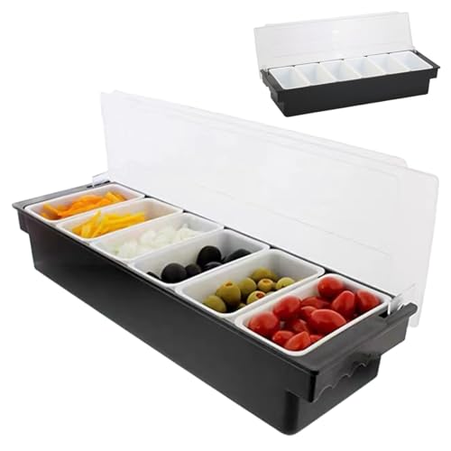 Kryddhållare med avtagbara 6 fack plastingredienser smaktillsatsdispenser med lock återanvändbar iskyld pizza topping station för hem, restaurang smaktillsatshållare smaktillsatsbehållare med