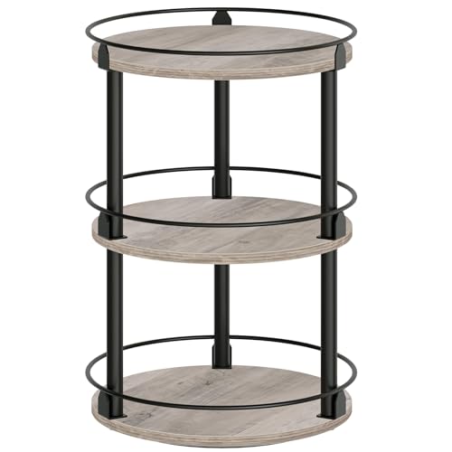 YATINEY Kryddhylla, 3-stegs vridbar förvaringslösning, cirkulär vridbar kryddhylla, kompakt kryddhållare med vridskiva, för köksbänk, matbord, gråbeige och svart XSR23BG