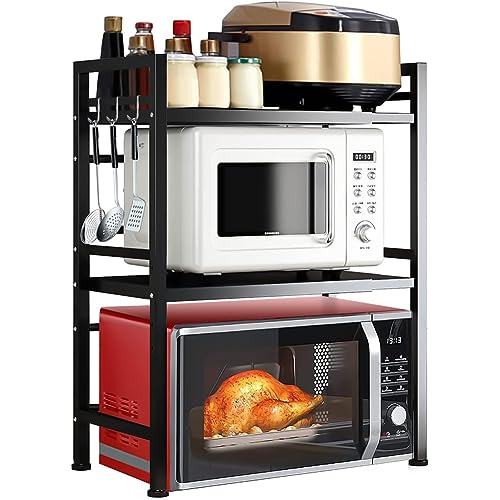 Shally Dogan Utrymmesbesparande hylla utdragbar hylla i stål, kökshylla med dubbla hyllor med 2 nivåer kryddhållare, organisatör med krokar och halkfria fötter, modern design (svart)
