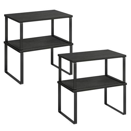 SONGMICS Kryddställ, Set med 2, Skåporganisatör, Expanderbar Köksförvaringshylla, Stapelbar Kryddhylla, Metall, Konstruerat Trä, Ink Black och Woodland Black KCS02B01