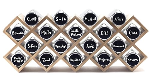 Hanseküche - kryddhylla i trä – FSC®-certifierad – kryddställ för skåpet med 18 x kryddburkar, etiketter och penna, brun