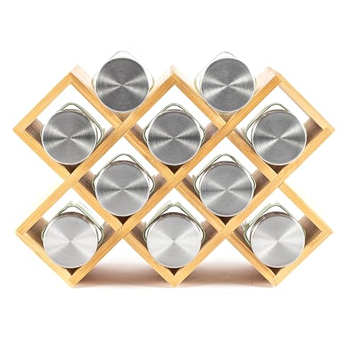 Tilz Kryddset, kryddhylla i trä med kryddor inklusive fristående påfyllning, örter-kryddblandning med 12 kryddor för matlagning, kryddset, små presenter för kvinnor