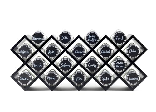 Hanseküche kryddhylla i trä – FSC®-certifierad – kryddställ för skåpet med 18 x kryddburkar, etiketter och penna – kryddhylla stående för skåpdörren, köksorganisatören (svart)