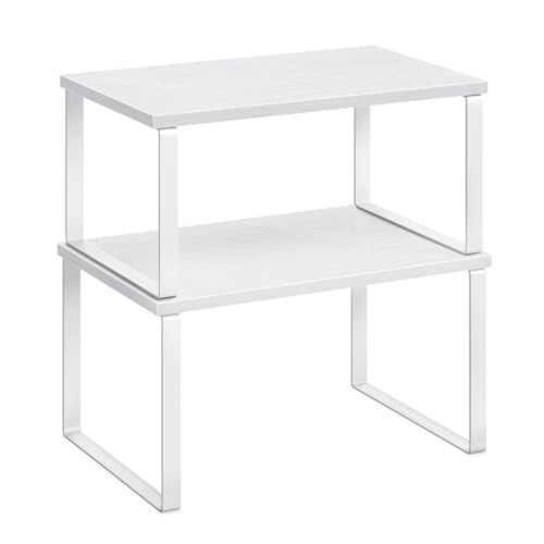 SONGMICS kryddhylla, set med 2, skåporganisatör, utbyggbar kökshylla, stapelbar kryddhylla, metall, konstruerat trä, molnvit och snövit KCS02W01