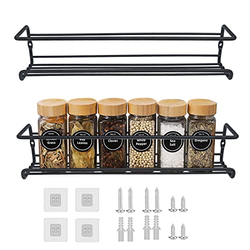 Cong.Lai Kryddhylla vägg, kryddförvaring av 4 metall, självhäftande kryddställ, kryddhylla utan borrning, kryddställ, hängande kryddhylla för köksförvaring skåpdörr, svart
