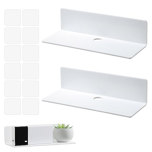 HENGBIRD Svävande hylla vägg set om 2, mini svävande hylla vit akryl svävande hylla vägg vägghylla tavelremsa vit för sovrum badrum kök kryddhylla vägg vardagsrum kontor djup 10 cm x bredd 23 cm