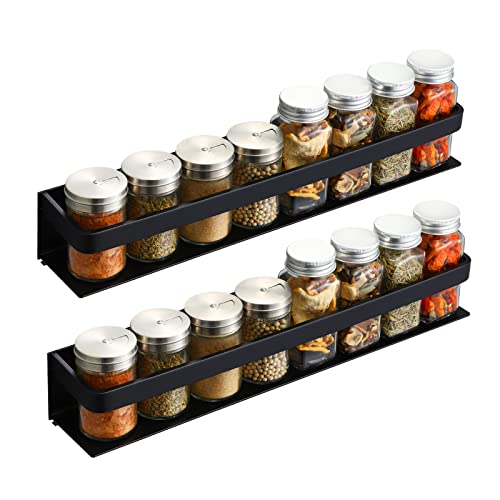 Shodiffy Kryddhylla vägg, 4-pack kryddorganisatör kryddhållare utan borrning kylskåp organiserare kökshylla vägg svart ca 29 x 6,6 x 6,4 cm