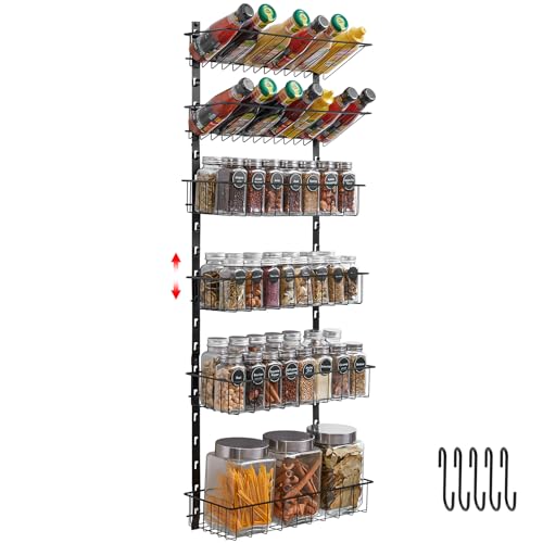 Moforoco 6-nivåer över dörren skafferi organisatör, skafferi organisation och förvaring, svart hängande korg vägg kryddhylla kryddhyllor, hem och kök tvättstuga badrum nödvändigheter tillbehör