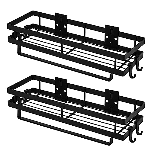devesanter Kryddhylla vägg utan borrning, 2 stycken 40 cm med 6 krokar, hängande kryddhylla, skåpdörr, rostfritt stål, duschhylla för kök, badrum, balkong (svart)