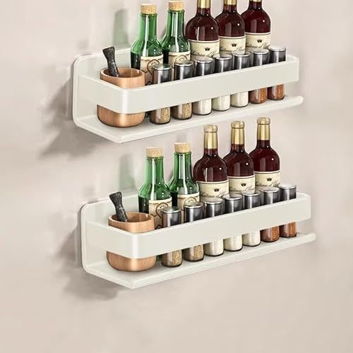 Hovoto Kryddhylla Vägg, 2 Stycken Hängande, Kökshylla Utan Borrning, Kryddhyllor Av Metall För Kök, Skåp, Badrum, Vit, 30 cm