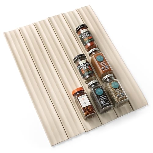 KitchenEdge kryddlåda organiserare med expanderbar förvaring, rymmer upp till 15 kryddburkar (ingår inte), halkfria fötter, kökstillbehörsförvaring, 100 % hållbar