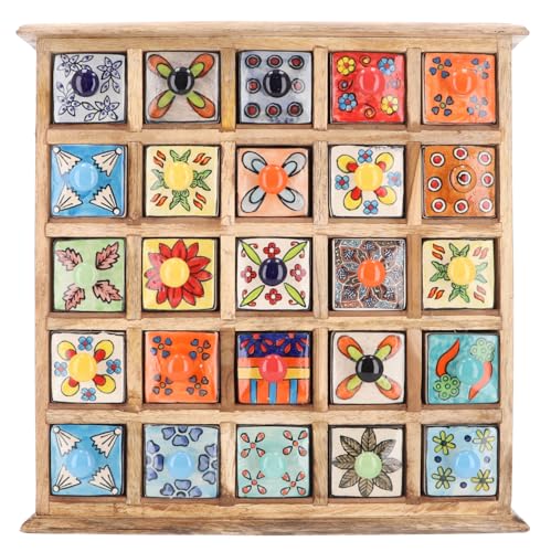 GURU SHOP Apoteksskåp med färgglada keramiska lådor, kryddlåda – 5 x 5 fack, 40 x 38 x 10 cm