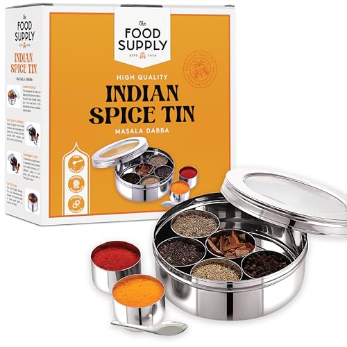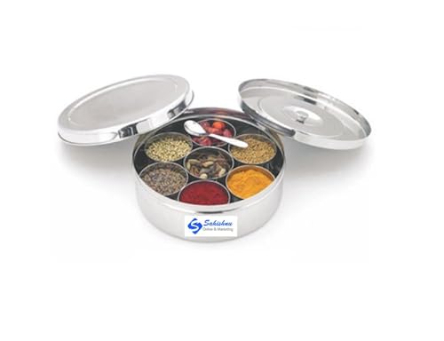 Sahishnu Online & Marketing Masala låda i rostfritt stål, Masala Dabba, kryddbehållare i stål, kryddlåda i rostfritt stål, indisk kryddlåda i rostfritt stål, masalala/kryddbehållare