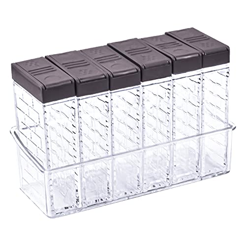 Pinsheng 6 delar genomskinlig kryddlåda, kryddburkar i plast med bricka och dubbelt öppet lock, campingkryddlåda för kök BBQ