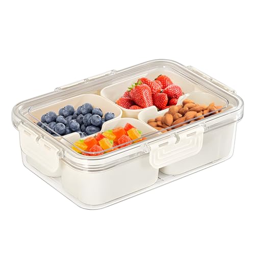 GJV Snackbox behållare, uppdelad serveringsbricka med lock och handtag 4 fack snackelbox behållare, mellanmålsorganisatör för vuxna fruktbricka, grönsaksbricka, lunchlåda, kryddlåda mångsidig