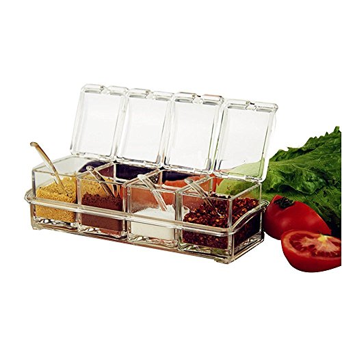 ParaCity Kitchen Gourmet akryl kryddlåda med 4 serveringsskedar, fin design för kök (kryddlåda)