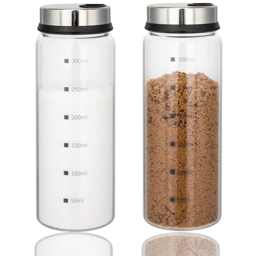 Aiareozy 300 ml kryddglas med vridlock, 2 stycken borosilikatglas kryddströare, kryddburkar, kryddströare, glas, med 3 typer av kryddhål, för köket, grillning utomhus, Bbq, matlagning