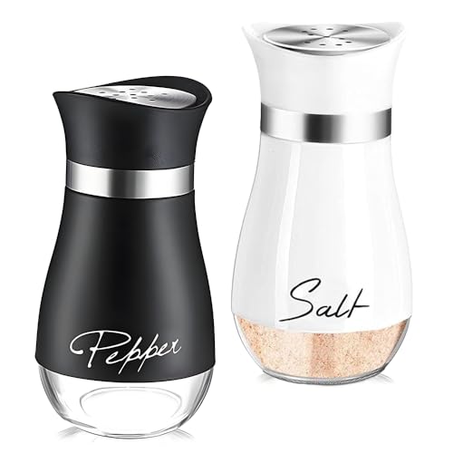 katmerio salt och pepparströare, set om 2, 120 ml glasbotten, saltströare, liten, kryddströare med lock i rostfritt stål, kryddströare, kökstillbehör för hem, kök, restaurang, matbord (svart, vit)