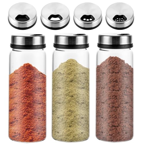 ZOFUN 3 stycken kryddburkar med skruvlock, 300 ml kryddburkar, glas, 16,5 x 6 cm, lufttäta kryddströare med 4 sorter, kryddburkar med roterande lock, spice burkar, för kök, matsal, grill utomhus