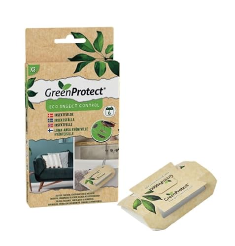 Green Protect insektsfälla – För krypande insekter – Luktfri klibbig fälla – Giftfri, håller i upp till 6 veckor, kan användas året runt och levereras i 3-pack