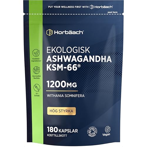 Ashwagandha KSM-66 1200mg | 180 Veganska Kapslar | Ashwagandha Ekologisk Vegan Kosttillskott | Withania Somnifera withania somnifera (Extrakt) | Hög Dosering | av Horbaach