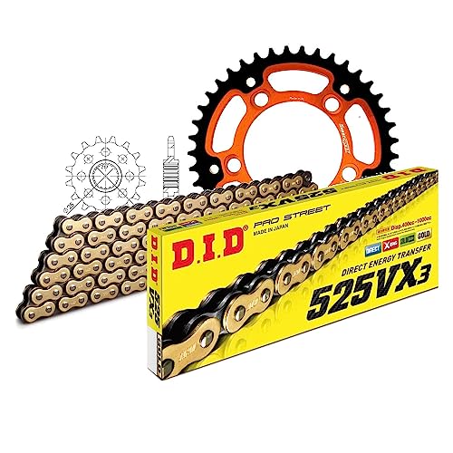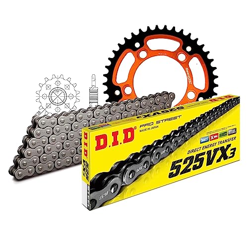 Kedjesats DID Alu 525VX3/118 nitlås orange för KTM LC8 Adventure R S 950/990 ccm Bj. 2002–2013