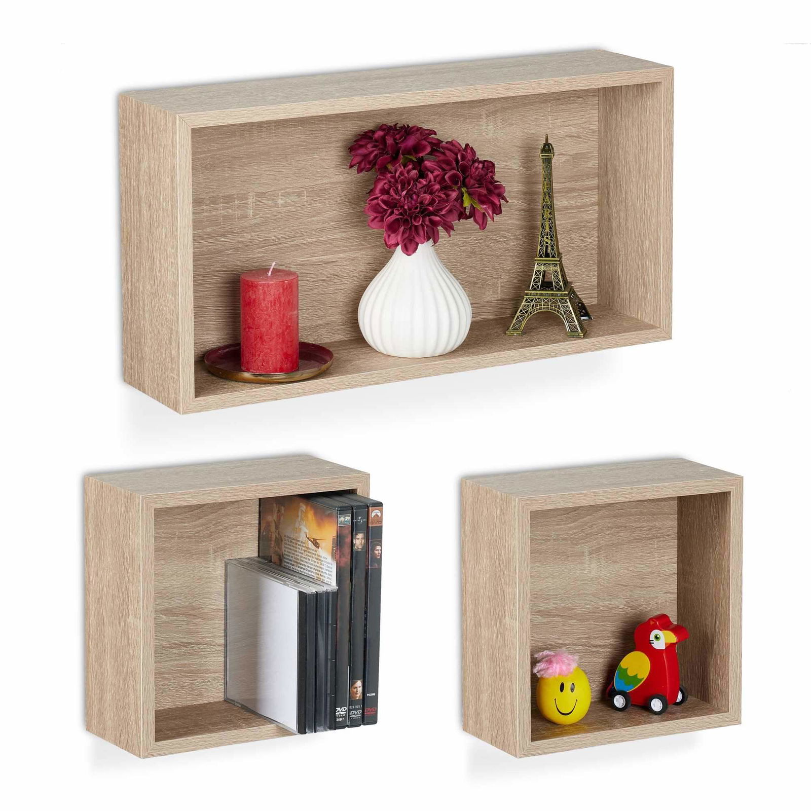 Relaxdays hänghyllor kub, vägghylla 3-pack, fyrkantig hylla för vägg, svävande hylla, MDF, vit/svart