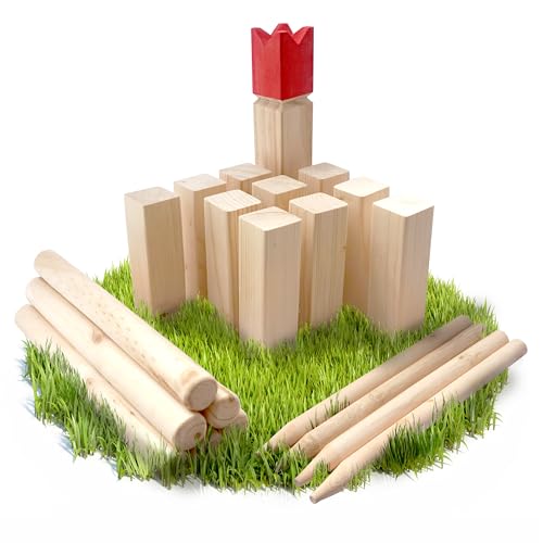 Ocean 5 Kubb – Original-vikingaspelet, högkvalitativt spel av FSC®-trä i tygpåse med massiva pjäser, svenskt schack av trä, utomhusspel/kastschackspel, kubbspel för barn och vuxna