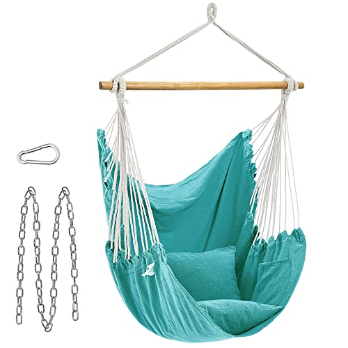 SONGMICS hängstol, hänggunga, hängstol med 2 kuddar, metallkedja, lastkapacitet upp till 150 kg, inomhus och utomhus, vardagsrum, sovrum, mintgrön GDC187Q02